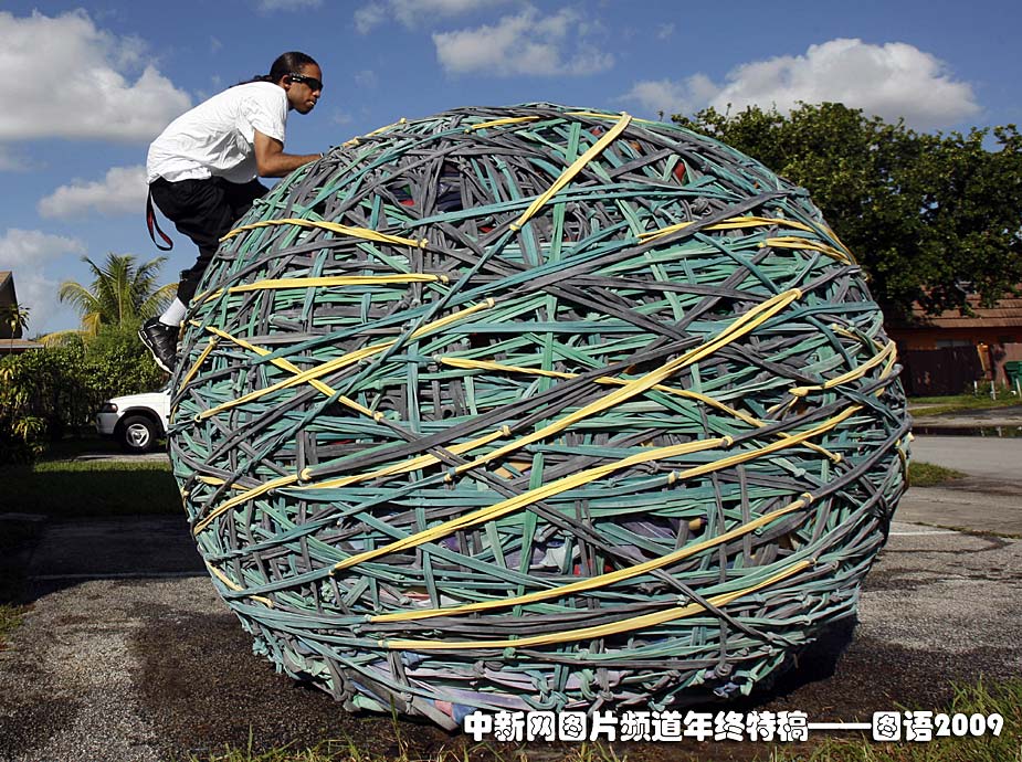 世界最大的橡皮筋球:10月23日,美國(guó)佛羅里達(dá)州青年喬爾終于完成了他的作品——世界上最大的橡皮筋球。圖片來(lái)源:中國(guó)新聞網(wǎng)