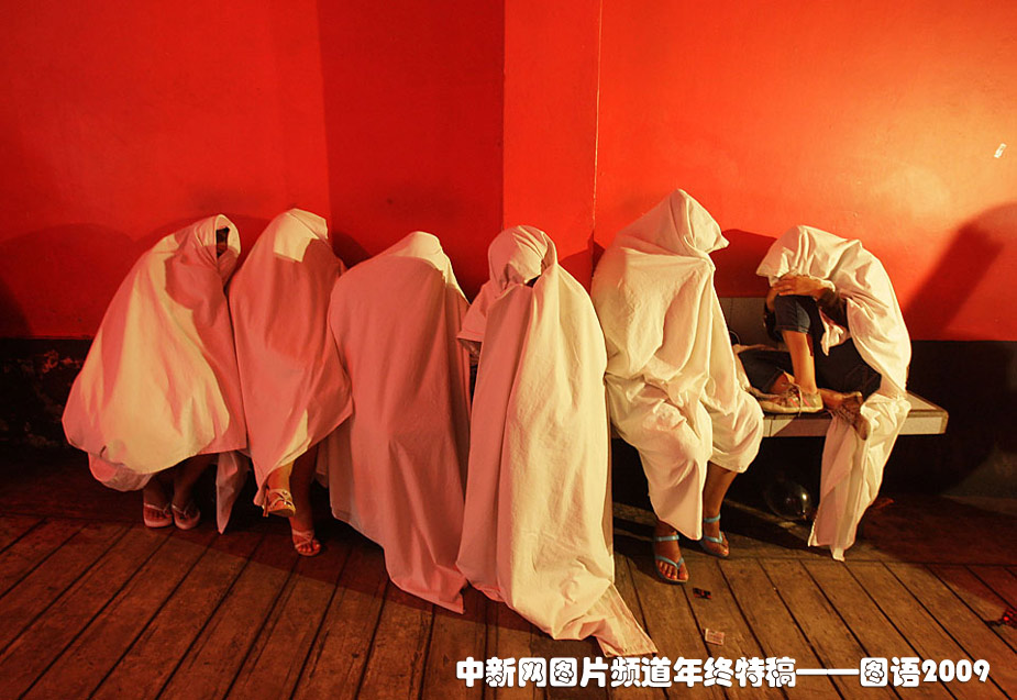 11月30日,秘魯首都利馬,來(lái)自紅燈區(qū)的性工作者準(zhǔn)備接受HIV檢測(cè)。她們大多以白布蒙面。