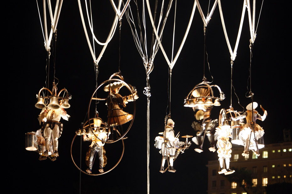 12月9日,墨西哥音樂舞蹈藝術(shù)家們進(jìn)行了一場(chǎng)“空中快車”表演,摩納哥的藝術(shù)家們吊在起重機(jī)上演奏樂器并表演空中舞蹈。圖片來源:中國新聞網(wǎng)