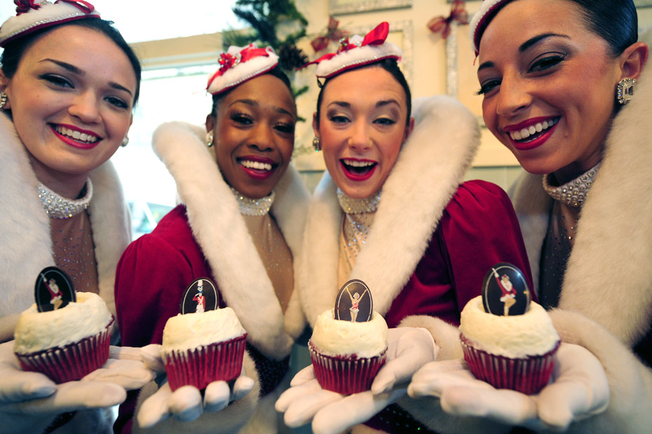 12月8日,美國紐約洛克茨無線電城“火箭女郎”舞蹈團(tuán)的隊員們近日與蛋糕店聯(lián)合推出演出套票,買蛋糕的觀眾可以以更優(yōu)惠的價格購得演出票。圖片來源:中國新聞網(wǎng)