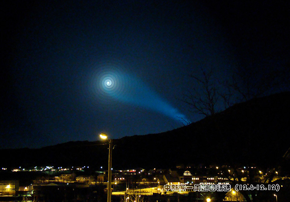 12月9日,挪威北部特羅姆瑟市上空發(fā)現(xiàn)不明“藍色發(fā)光螺旋狀”現(xiàn)象。圖片來源:中國新聞網>>點擊觀看詳細內容