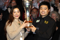 丁俊暉與母親共捧金杯