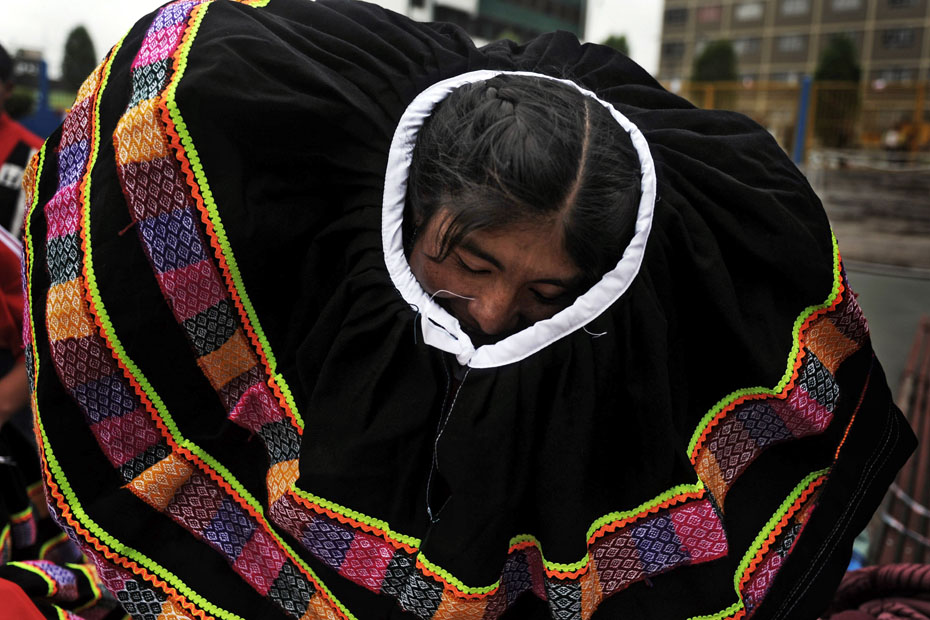 12月12日,秘魯印第安婦女在利馬國家體育場外舉辦了一場特別的足球賽,所有的球員均身著傳統(tǒng)服飾光腳上陣妙趣橫生。圖片來源:中國新聞網(wǎng)