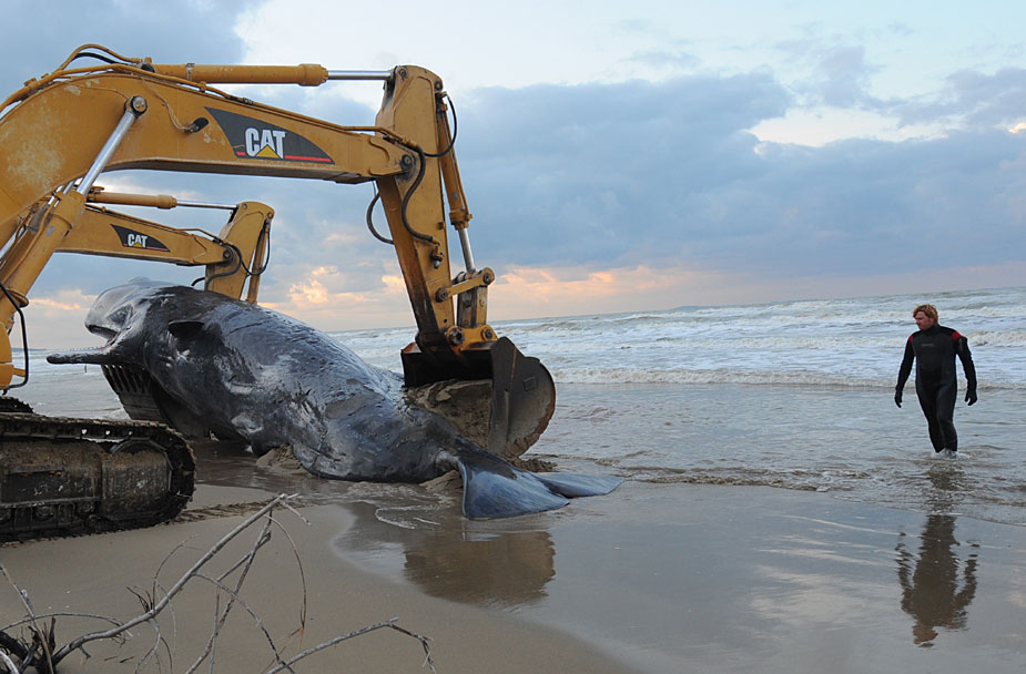 一群抹香鯨12月12日在意大利南部海灘擱淺,其中至少5頭已經(jīng)死亡。據(jù)稱,這群抹香鯨共有9頭,其中有2頭經(jīng)過(guò)救援已成功游回大海,目前相關(guān)人員對(duì)另外2頭正在進(jìn)行救援。圖片來(lái)源:中國(guó)新聞網(wǎng)
