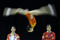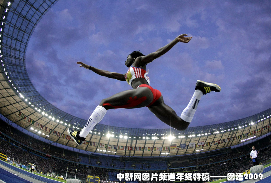 世界田徑錦標(biāo)賽賽場(chǎng)上,古巴選手薩維涅以14米95的成績獲得女子三級(jí)跳遠(yuǎn)的金牌。