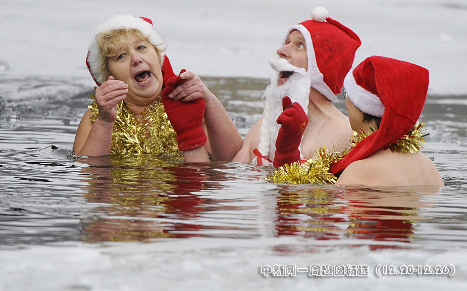 12月25日,德國柏林的冬泳俱樂部“柏林海豹”(Berliner Seehunde)的成員不畏寒冬,光著身子在已經(jīng)結(jié)冰的Oranke湖中暢游一番。圖片來源:中國新聞網(wǎng)>>點(diǎn)擊觀看詳細(xì)內(nèi)容