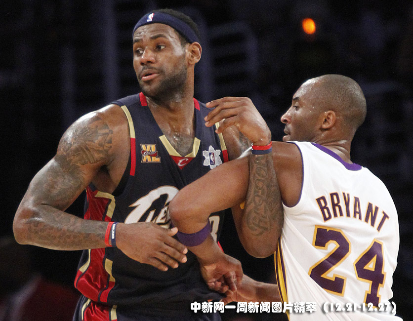 25日(周五),NBA圣誕大戰(zhàn),洛杉磯湖人隊(duì)迎戰(zhàn)克里弗蘭騎士隊(duì),兩隊(duì)的當(dāng)家球星科比布萊恩特和小皇帝詹姆斯近身“肉搏”。