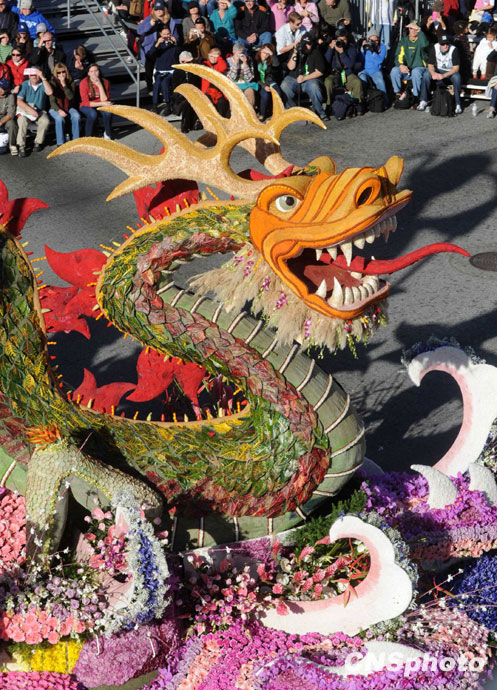 美國(guó)當(dāng)?shù)貢r(shí)間1月1日,第121屆美國(guó)玫瑰花車(chē)大游行在加州帕薩迪納市隆重舉行。著名影星成龍助陣中國(guó)上海世博花車(chē)。圖片來(lái)源:中國(guó)新聞網(wǎng)