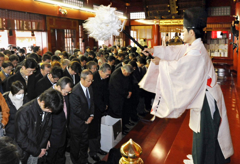 2010年1月4日,日本東京,商人聚集在神田神社里祈福,希望在新的一年里生意興隆。當(dāng)天是日本股市2010年首個(gè)交易日,市場(chǎng)升勢(shì)延續(xù)。圖片來(lái)源:中國(guó)新聞網(wǎng)