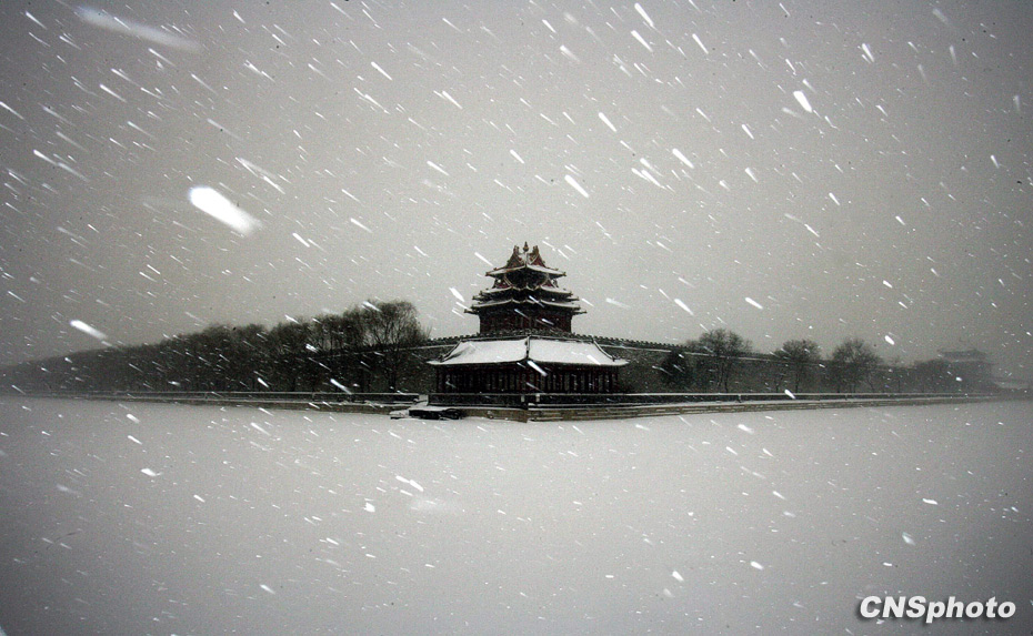 1月3日,大雪中的北京故宮角樓。