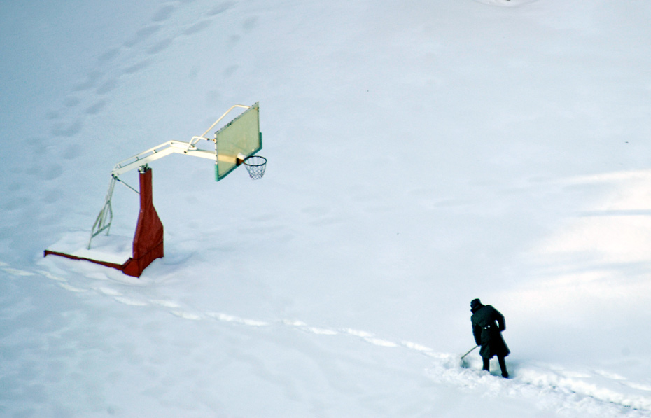1月4日,北京,一名工人正在清除學(xué);@球場(chǎng)的積雪。
