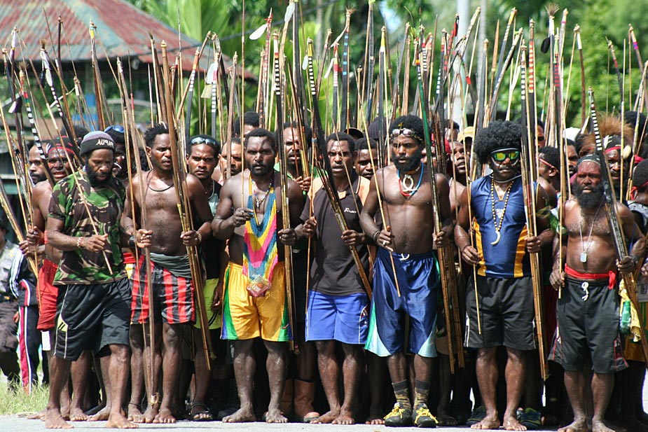 1月6日,印尼巴布省的兩個村落因債務(wù)問題引發(fā)了武裝爭斗,雙方手持弓箭等原始武器進(jìn)行了一場原始的戰(zhàn)爭。目前,這場沖突已經(jīng)造成多人傷亡。圖片來源:中國新聞網(wǎng)
