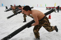 消防官兵雪中赤膊苦練