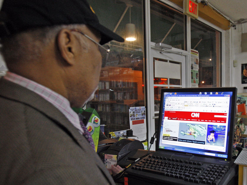 當(dāng)?shù)貢r(shí)間12日下午,海地發(fā)生7.0級(jí)強(qiáng)烈地震,多座建筑損毀。在美國(guó)邁阿密,一位民眾通過(guò)網(wǎng)絡(luò)查看海地大地震的消息。