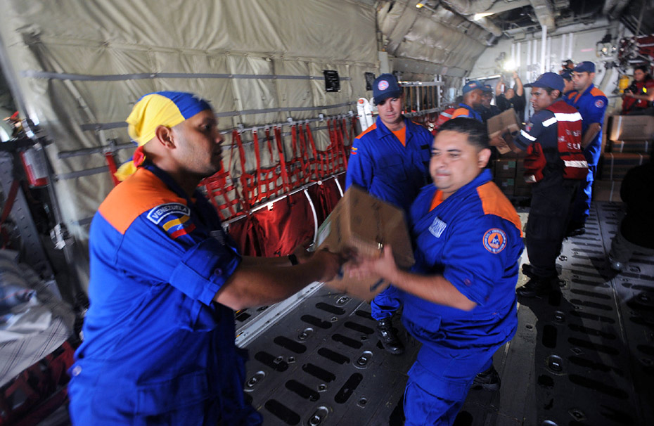圖為委內(nèi)瑞拉救援物資正在緊張裝備中。海地發(fā)生強烈地震,傷亡慘重,國際社會在第一時間紛紛伸出援手。中國、美國、法國等多個國家和地區(qū)的救援隊已集結(jié)完畢,奔赴海地地震災(zāi)區(qū)。圖片來源:中國新聞網(wǎng)