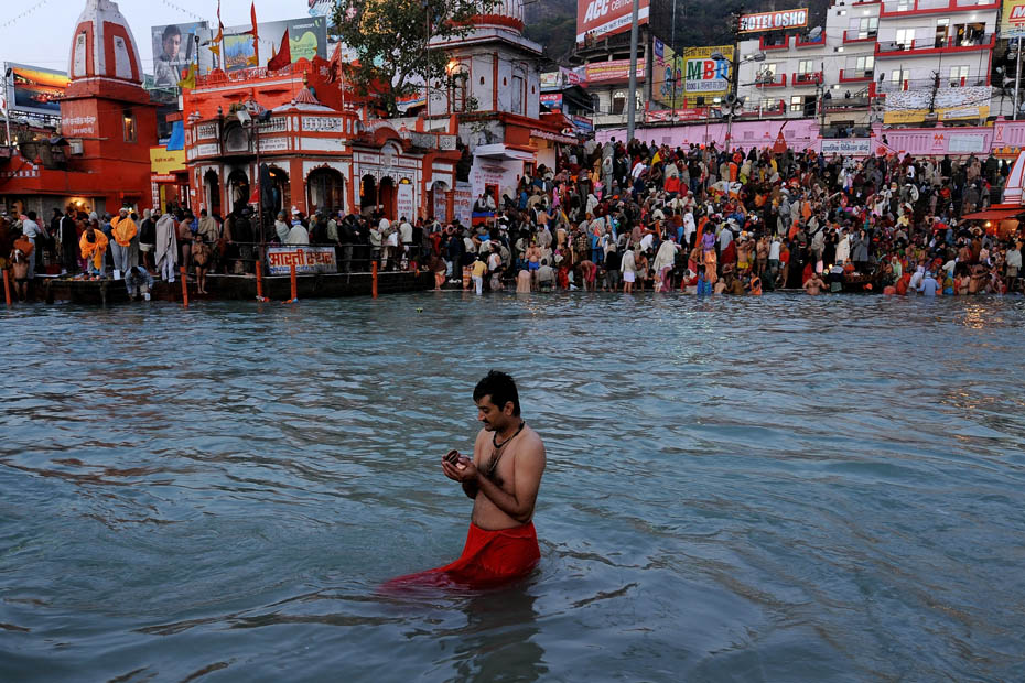 1月14日,數(shù)千名印度教信徒前往恒河參加世界上最大的宗教集會大壺節(jié),并在印度圣河——恒河進行了沐浴儀式。圖片來源:中國新聞網(wǎng)