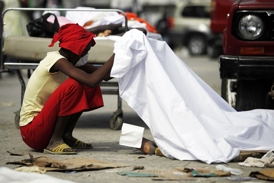 海地7級大地震后,街邊一排排無名尸體已開始腐爛,在巨大的廢墟下時(shí)不時(shí)的傳出被壓難民的呻吟聲,幾乎夷為平地的首都太子港淪為露天難民營。圖片來源:中國新聞網(wǎng)