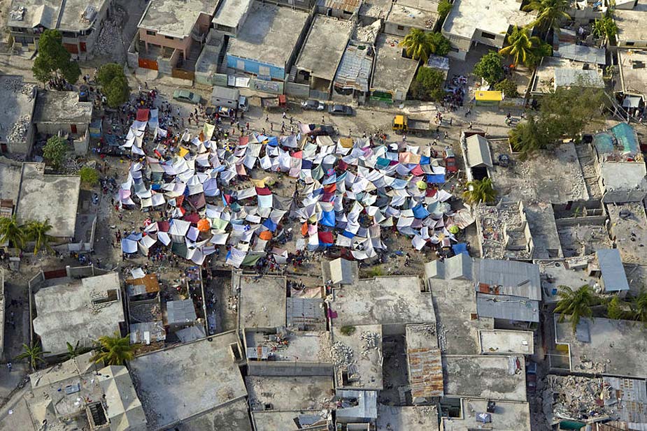 2010年1月13日,海地地震第二天,航拍震后太子港。臨時(shí)帳篷。