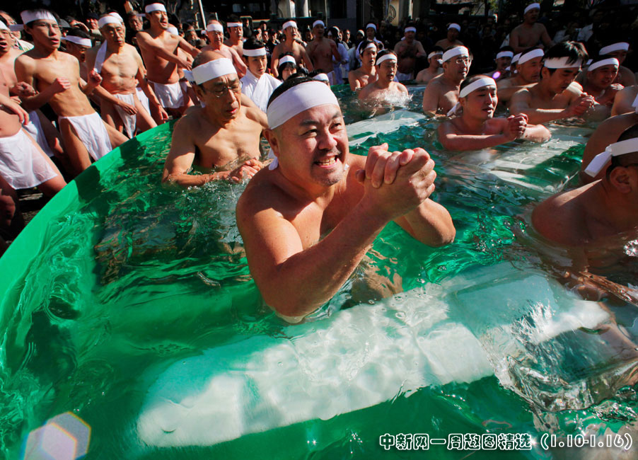 2010年1月10日,日本東京,眾多健身愛好者一同在冷水中浸泡,祈禱自己在新一年身體健康,并展示自己的體魄。圖片來源:中國新聞網(wǎng)>>點擊觀看詳細內容