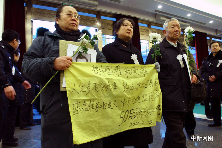 海地地震遇難中國維和警察遺體告別儀式1月20日上午9時在北京八寶山殯儀館大禮堂舉行。圖片來源:中國新聞網(wǎng)