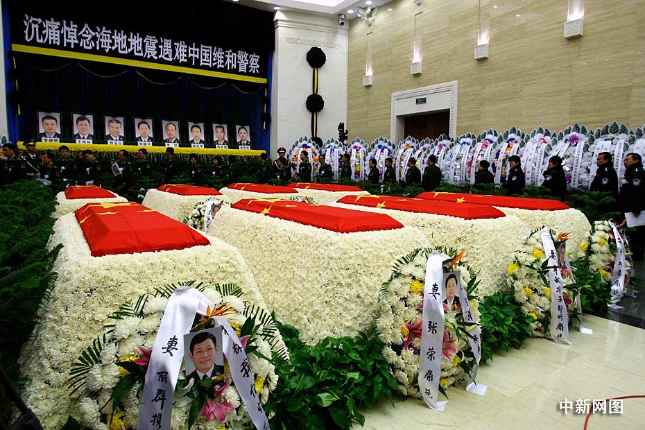 海地地震遇難中國維和警察遺體告別儀式1月20日上午9時在北京八寶山殯儀館大禮堂舉行。圖片來源:中國新聞網
