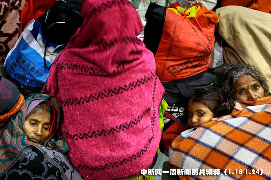 1月18日,乘客們在印度瓦拉納西的火車站候車時(shí)裹著毯子取暖。大霧和嚴(yán)寒天氣導(dǎo)致印度北部多個(gè)地區(qū)的交通中斷,反常的寒冷天氣已致使數(shù)十人喪生。圖片來源:中國新聞網(wǎng)