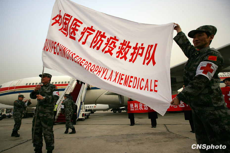 1月24日18時(shí),由中國人民解放軍醫(yī)護(hù)人員和管理人員組成的中國醫(yī)療防疫救護(hù)隊(duì)一行40人乘坐軍運(yùn)包機(jī)離開北京,啟程前往海地進(jìn)行人道主義救援任務(wù)。