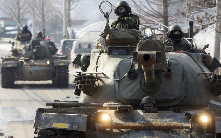 1月27日,韓國江原道,韓國陸軍部隊(duì)在嚴(yán)寒中進(jìn)行戰(zhàn)術(shù)訓(xùn)練。