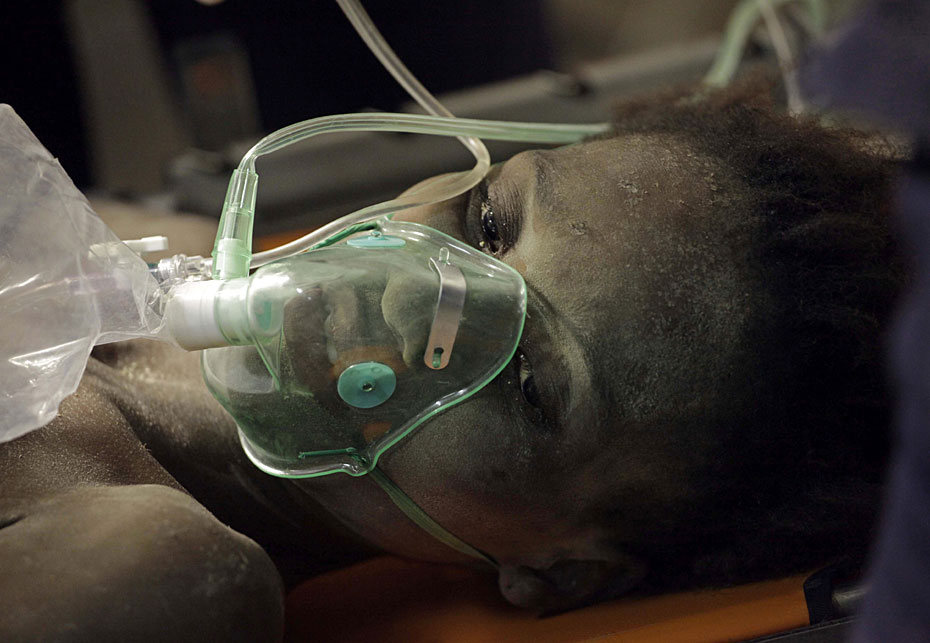 2010年1月27日,海地太子港,法國救援人員在一棟房屋的廢墟下救出被困15天的16歲女孩黛琳娜·艾提尼(Daline Etienne)。女孩微弱的話語讓大家著實吃驚:她竟是憑著隨身的可樂挺了過來。圖片來源:中國新聞網