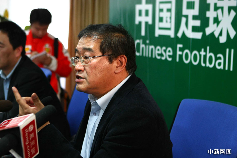 圖為中國足協(xié)新任掌門人韋迪召開首個新聞發(fā)布會現(xiàn)場。中新社記者 富田 攝
