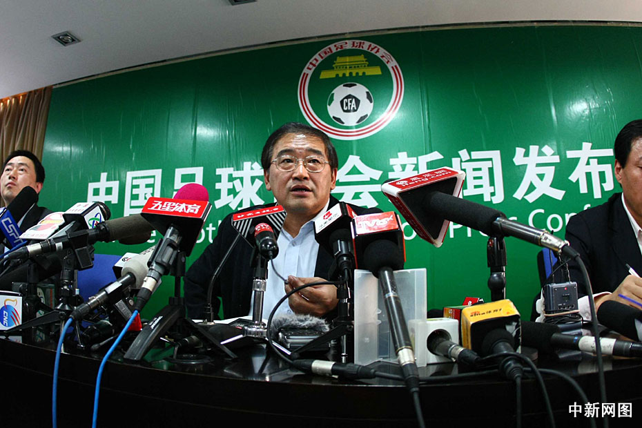 圖為中國足協(xié)新任掌門人韋迪召開首個新聞發(fā)布會現(xiàn)場。中新社記者 富田 攝