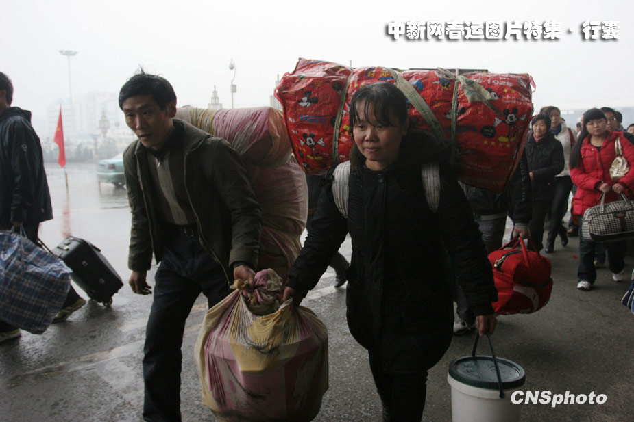 春節(jié)臨近,出門在外的人拎著大包小包地回家過(guò)年。這行囊或重或輕,可能是帶給父母的孝敬,也可能是帶給愛(ài)人的心動(dòng),但每個(gè)行囊中一定都會(huì)裝著人們一年來(lái)收獲的喜悅之情。中新社發(fā) 孫新明 攝