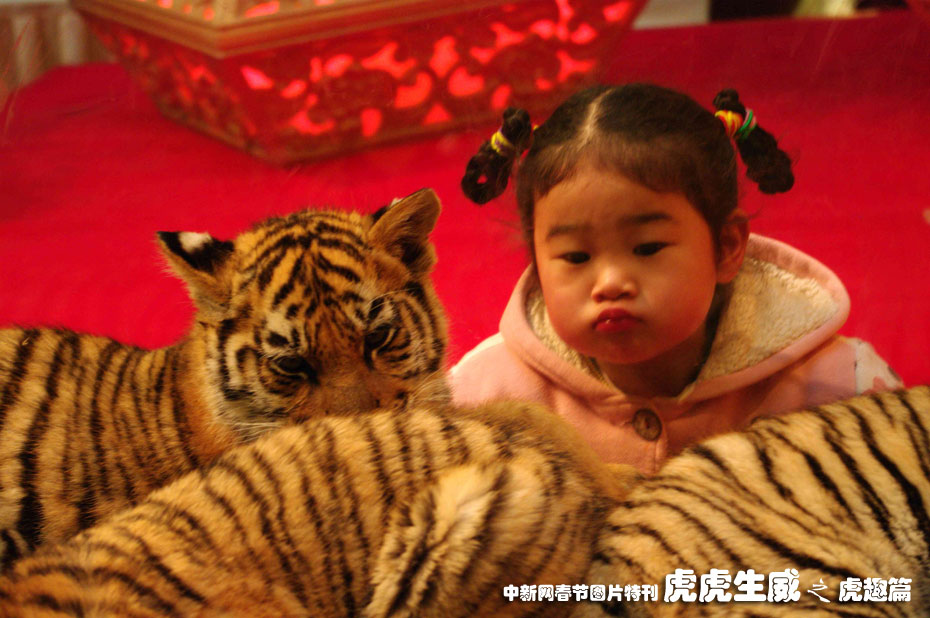 1月30日,虎年將至,重慶某商廈開展野生動(dòng)物保護(hù)法宣傳,“請(qǐng)”來幾只活潑可愛的小老虎與市民近距離接觸,人見人愛。中新社發(fā) 金城 攝