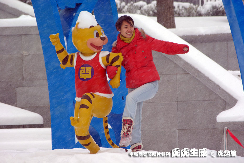 1月3日,北京降下新年第二場雪,在西單文化廣場,人們紛紛拿出相機拍照,留下白雪世界的倩影和新年的祝福。中新社發(fā) 九州 攝