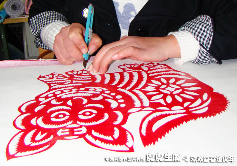 12月21日,重慶市云陽教師進(jìn)修學(xué)院08級幼教班的學(xué)生在利用美術(shù)課“剪老虎”。中新社發(fā) 饒國君 攝