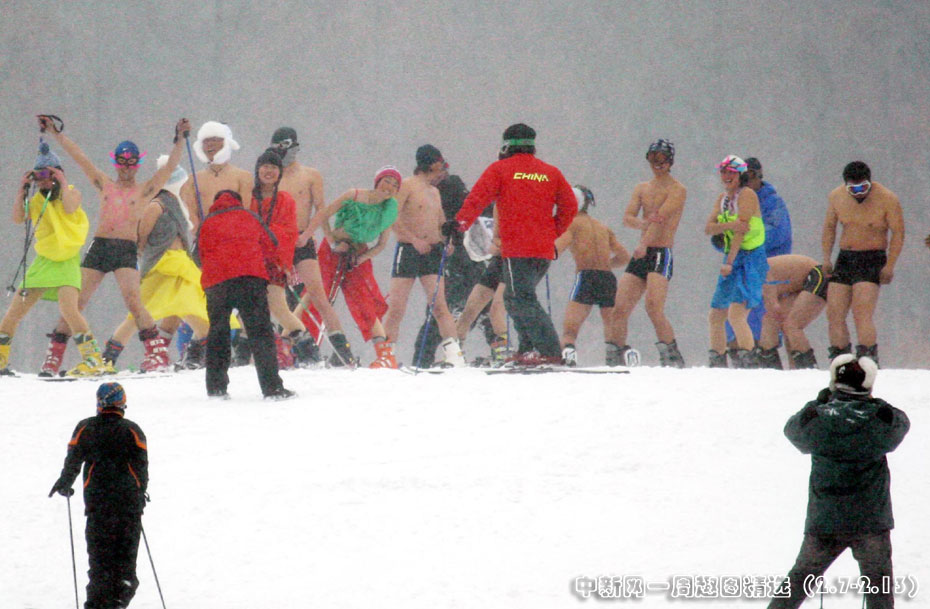 2月7日,備受矚目的沈陽首屆“光豬”滑雪狂歡節(jié)在沈陽森林公園東北亞滑雪場舉行。當(dāng)天,數(shù)十名參賽選手甩掉笨重冬裝,換上泳裝,縱情雪上。圖片來源:中國新聞網(wǎng)>>點擊觀看詳細(xì)內(nèi)容