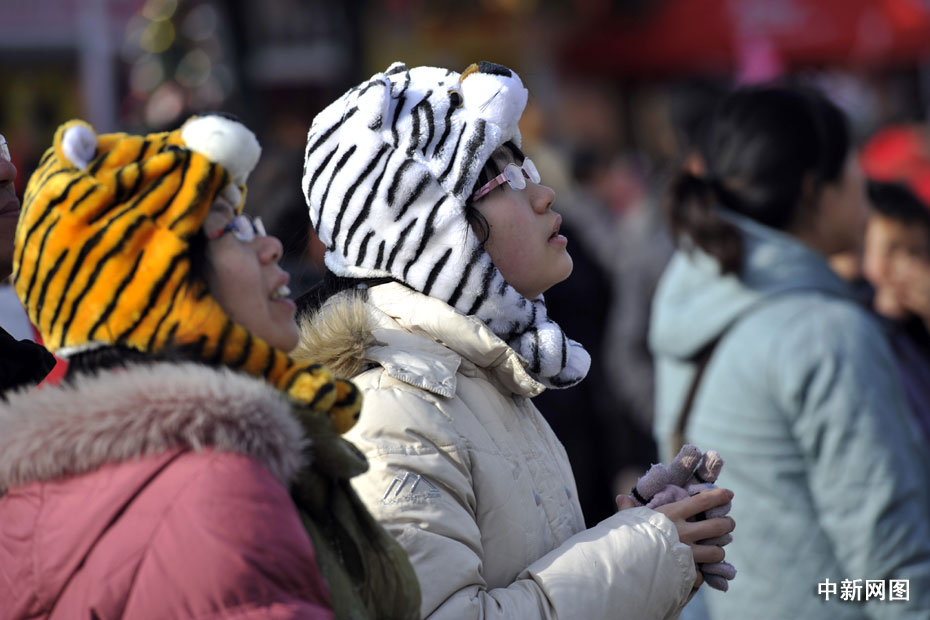 2月14日,農(nóng)歷正月初一,北京各大傳統(tǒng)廟會(huì)、洋廟會(huì)爭(zhēng)相開幕,許多游客頭戴虎年飾品開心游廟會(huì)。中新網(wǎng)記者 金碩 攝