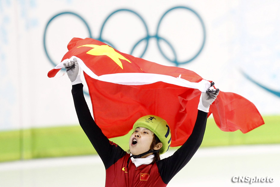 2010年溫哥華冬奧會短道速滑女子500米決賽北京時間2月18日上午11時許舉行,中國選手王濛獲得冠軍,為中國代表團再添一枚金牌。中新社發(fā) 盛佳鵬 攝 圖片來源:中國新聞網(wǎng)