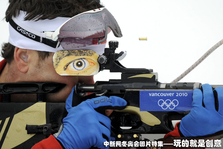 男子冬季兩項(xiàng)比賽中,挪威選手的眼罩別具一格。圖片來(lái)源:中國(guó)新聞網(wǎng)