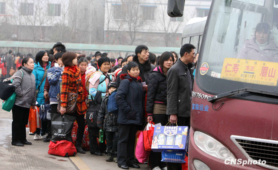 2月19日,隨著春節(jié)假期即將結束,四川省樂山、眉山、成都等地返程旅客越來越多,公路、鐵路、航空都迎來節(jié)后返程客流高峰期,僅仁壽客運中心前往成都、瀘州、重慶以及上海、深圳等地的73條客運線路的1300個班次趟趟滿員,旅客量高達2.5萬人。中新社發(fā) 劉忠俊 攝