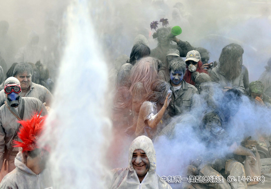 2月15日,希臘港口加拉西迪,狂歡者在街頭參加“面粉大戰(zhàn)”!懊娣鄞髴(zhàn)”是當(dāng)?shù)貞c?駳g季結(jié)束的一項傳統(tǒng)活動,隨后將是為期40天的齋戒月直至復(fù)活節(jié)。圖片來源:中國新聞網(wǎng)>>點擊觀看詳細內(nèi)容