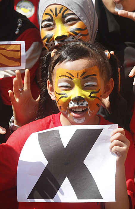 馬來西亞民眾繪虎面呼吁保護(hù)野生虎