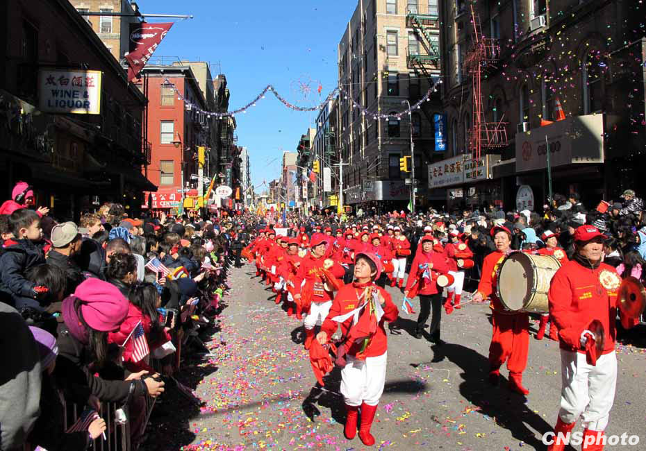 虎年紐約華埠慶祝農(nóng)歷新年“重頭戲”花車大游行21日登場(chǎng),吸引超過(guò)10萬(wàn)人圍觀共同狂歡,成為歷年來(lái)參加人數(shù)最多的一次花車游行。12輛盛裝花車以及數(shù)千人的表演團(tuán)隊(duì)沿著華埠最熱鬧的數(shù)十條街道一邊行進(jìn)一邊表演,滿天彩帶飄揚(yáng),場(chǎng)面熱鬧非常。中新社發(fā) 魏晞 攝