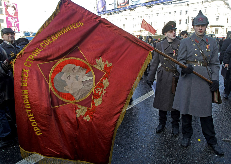 2月23日,俄羅斯莫斯科,示威者參加俄羅斯共產(chǎn)黨組織的集會(huì),抗議軍隊(duì)改革。圖片來源:中國新聞網(wǎng)