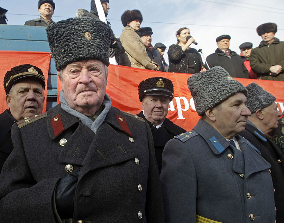 2月23日,俄羅斯莫斯科,示威者參加俄羅斯共產(chǎn)黨組織的集會(huì),抗議軍隊(duì)改革。圖片來源:中國新聞網(wǎng)