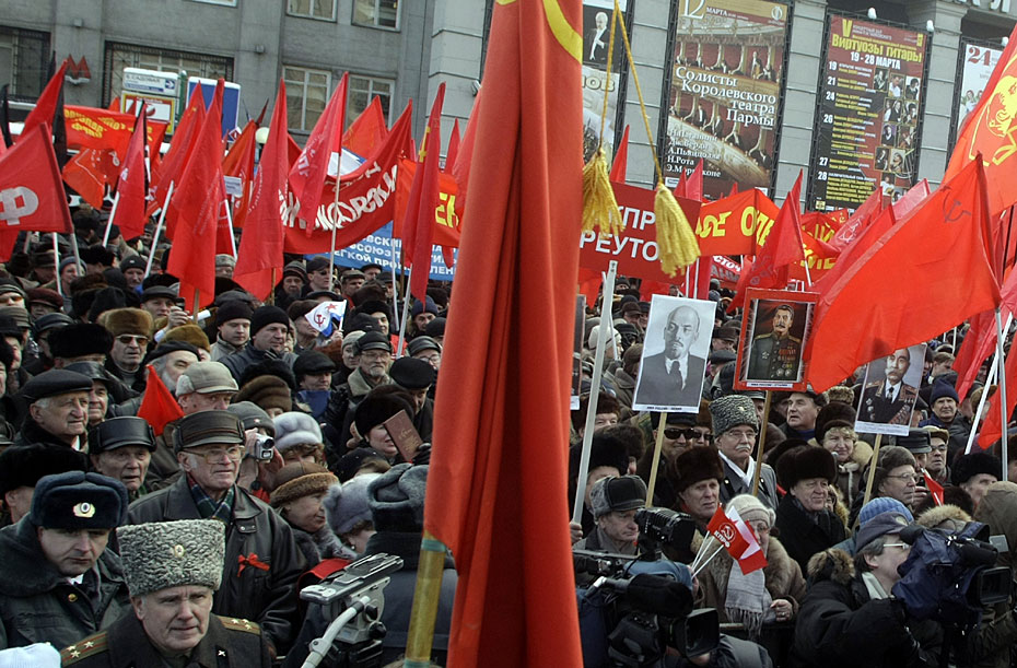 2月23日,俄羅斯莫斯科,示威者參加俄羅斯共產黨組織的集會,抗議軍隊改革。圖片來源:中國新聞網