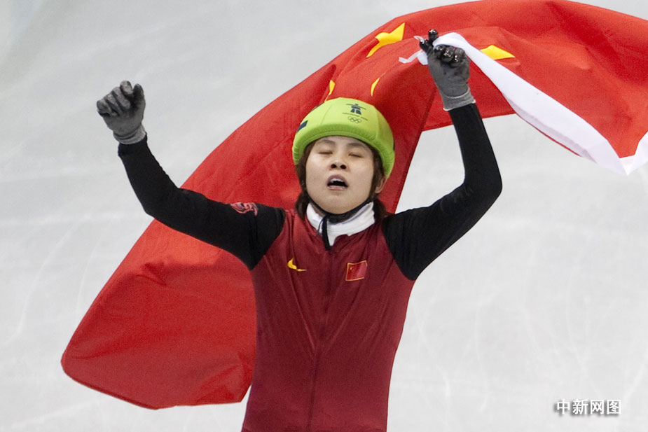 北京時(shí)間27日中午,中國(guó)選手王濛在2010年溫哥華冬奧會(huì)短道速滑女子1000米的決賽中摘得金牌。圖片來源:中國(guó)新聞網(wǎng)