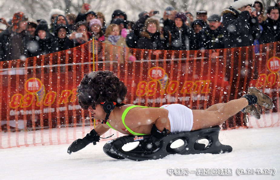 在德國(guó)北部小鎮(zhèn)舉行了一場(chǎng)別開(kāi)生面的滑雪大賽,參賽者在冰天雪地中赤裸著上身在滑雪板上滑行。圖片來(lái)源:中國(guó)新聞網(wǎng)>>點(diǎn)擊觀看詳細(xì)內(nèi)容