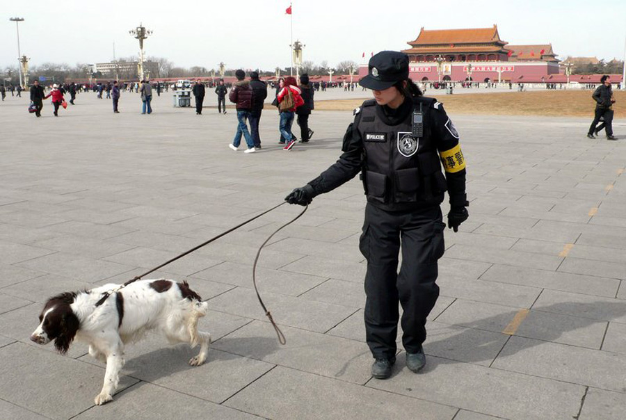 為確保兩會的順利召開,北京市啟動了一級安保護駕"兩會",同時動員組織了治安巡邏隊、治安志愿者、單位內(nèi)部保衛(wèi)人員、社區(qū)保安等群防群治力量70萬人,形成專群結(jié)合、組織嚴(yán)密的防控網(wǎng)絡(luò)。天安門附近是兩會安保的重點區(qū)域。charlie 攝