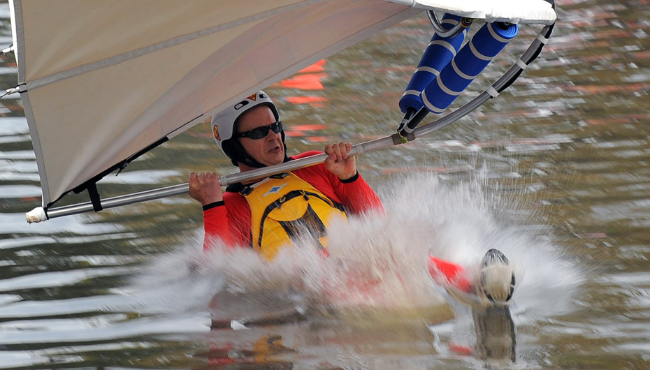 當(dāng)?shù)貢r(shí)間3月7日,澳大利亞墨爾本舉行一年一度的“鳥人”大賽上,參賽者帶著自己的無動(dòng)力“翅膀”飛身躍向水面。圖片來源:中國新聞網(wǎng)